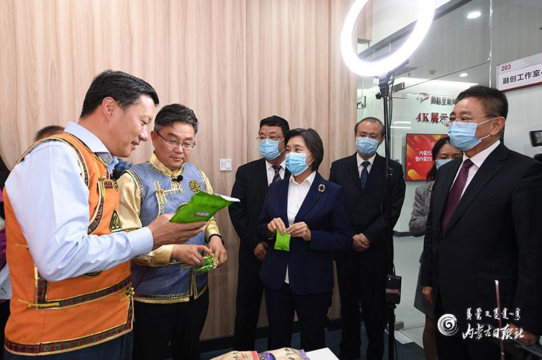 啟動(dòng)儀式后,與會(huì)人員參觀了內(nèi)蒙古廣播電視臺首屆電商節(jié)直播帶貨活動(dòng)。