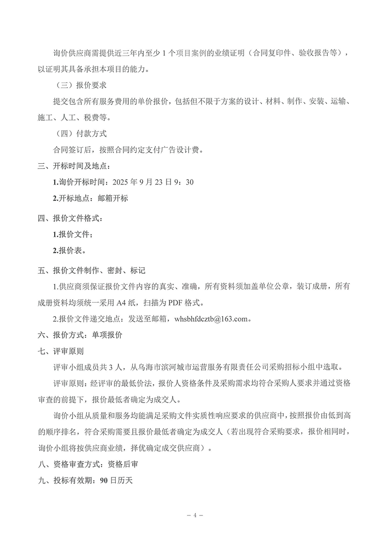 - 2025-06-11烏海市濱河城市運營服務有限責任公司自持資產及受托管理資產租金及售價評估詢價文件