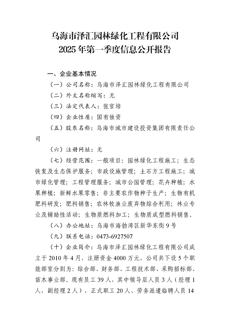 - 2025-07-28烏海市澤匯園林綠化工程有限公司2025年第二季度信息公開