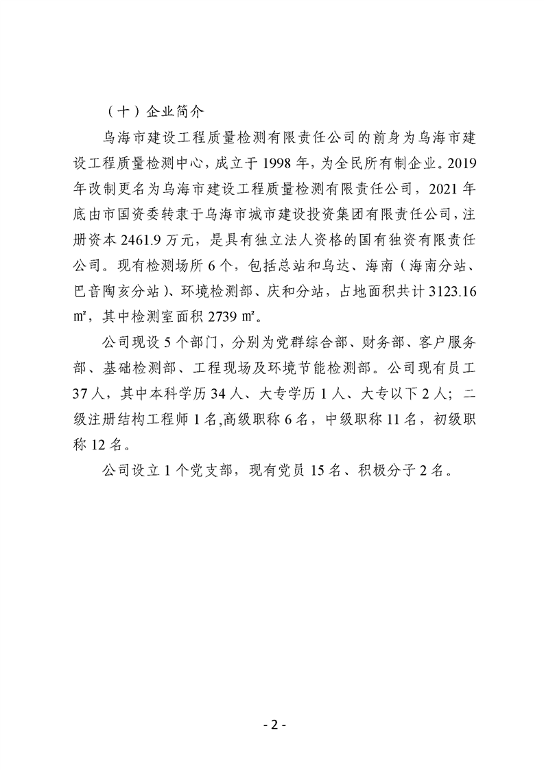 - 2025-03-10烏海市建設(shè)工程質(zhì)量檢測有限責(zé)任公司2024年度信息公開報(bào)告