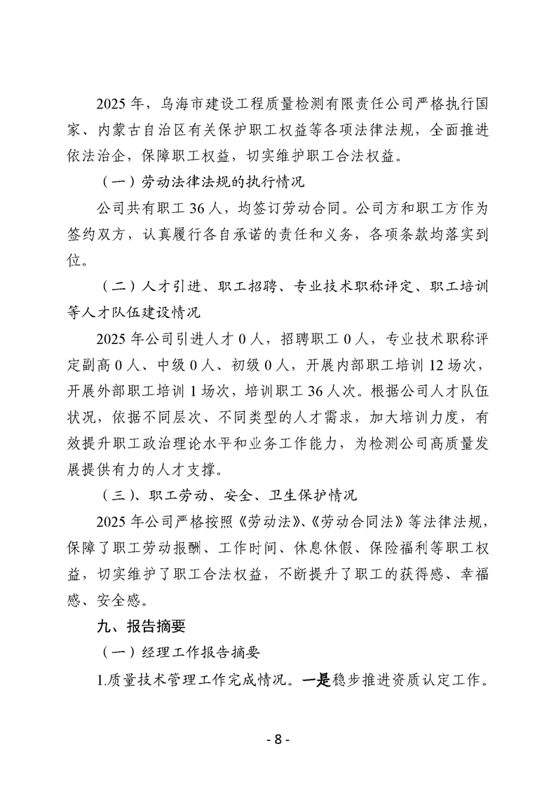 - 2025-03-10烏海市建設(shè)工程質(zhì)量檢測有限責任公司2024年度信息公開報告