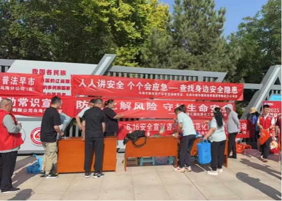 烏海市水務(wù)投資公司:積極響應(yīng)“人人講安全、個個會應(yīng)急——查找身邊安全隱患”安全生產(chǎn)月主題,通過懸掛活動主題橫幅、擺放安全宣傳展板、現(xiàn)場派發(fā)安全生產(chǎn)宣傳資料、設(shè)立宣傳咨詢臺等方式,向群眾普及安全生產(chǎn)、消防等安全知識。